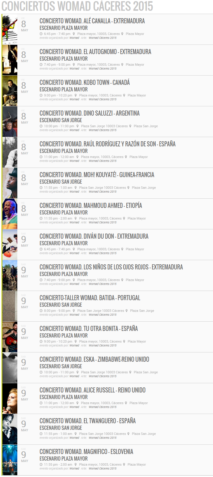 En esta web somos muy defensores del Rock y del Metal y como festival de música del mundo debería al menos contar con algún grupo de Rock y Metal dentro de su programación (hay muchos estilos de rock y metal, desde melódicos a más cañeros, es decir, es bastante viable).
